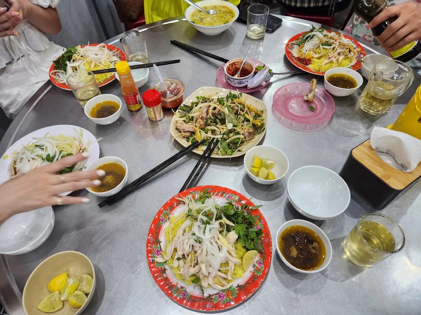 If you want a lighter option besides cao lầu, Cơm Gà Hiền is a good choice. The dish comes with fragrant yellow rice, tender chicken, and light seasoning. It’s a humble place with affordable prices, perfect for lunch or dinner.