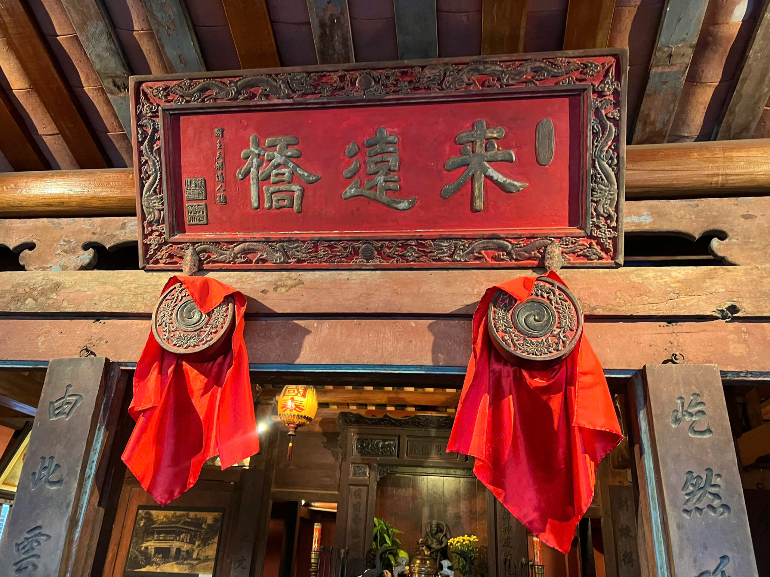 At the center of the bridge stands a small shrine dedicated to the Taoist god Tran Vo (also known as Xuan Wu), believed to be the guardian of peace and protection for the land. Although called a “temple,” the structure is not Buddhist but instead represents a blend of local spiritual beliefs.